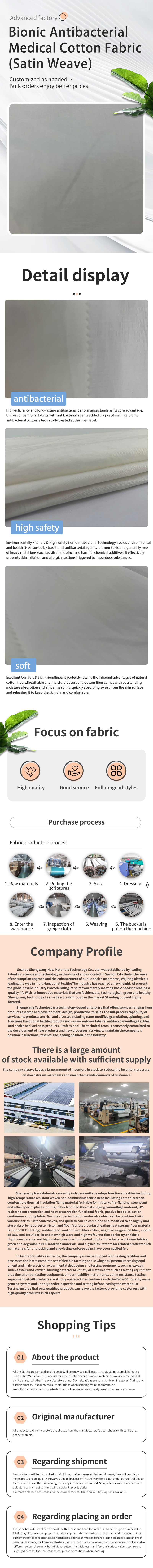 O desempenho antibacteriano eficiente e duradouro é a sua principal vantagem. Ao contrário dos tecidos convencionais com agentes antibacterianos adicionados via pós-acabamento, o algodão antibacteriano biomimético é tecnicamente tratado ao nível da fibra.