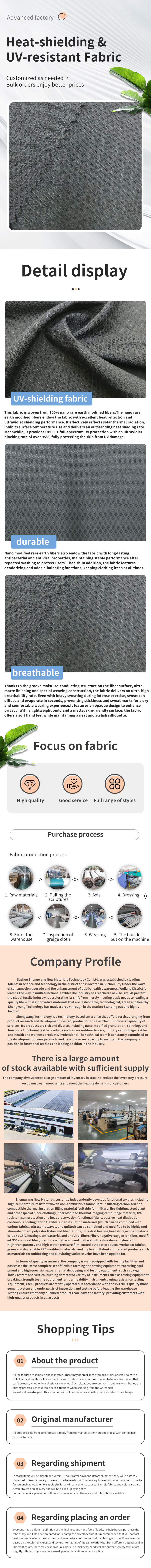 Tecido avançado de bloqueio de UV resistente ao calor