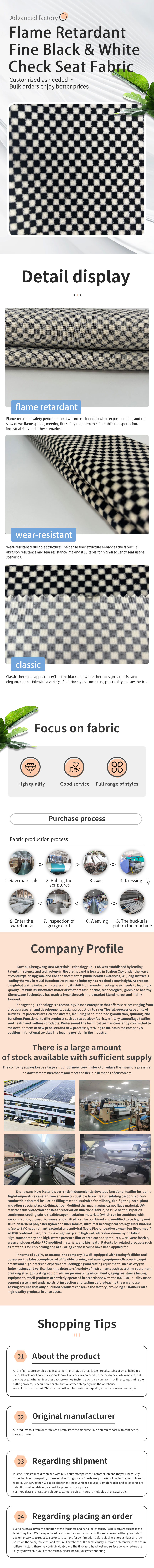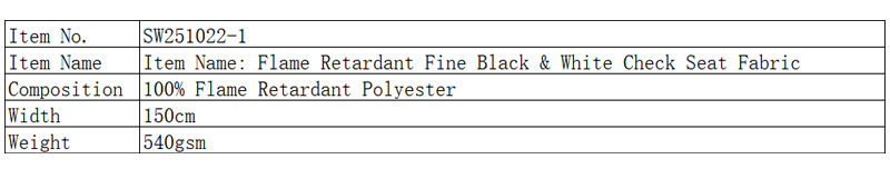 Tecido de assento xadrez fino preto e branco retardador de chamas