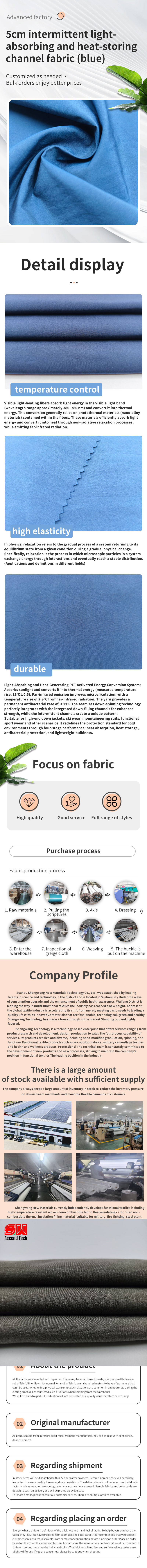 Tecido de canal interrompido com controle de calor azul