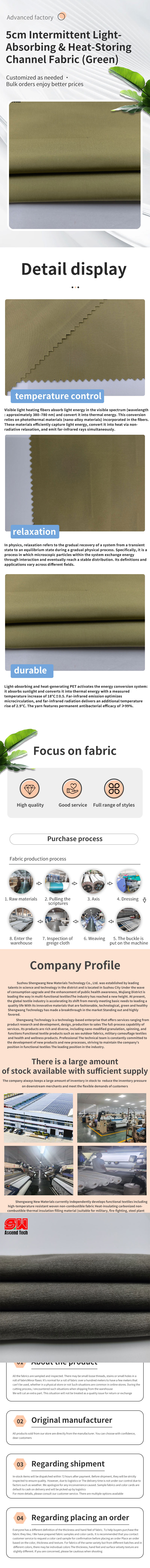Tecido de canal de armazenamento de calor com absorção de luz verde de 5 cm